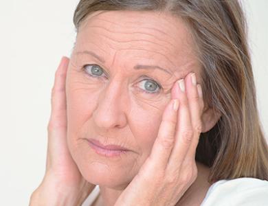 - mimične gube, linije, brazde, povešene veke, podočnjake in kolobarje pod očmi, podbradek, nepravilnosti in razbarvanja